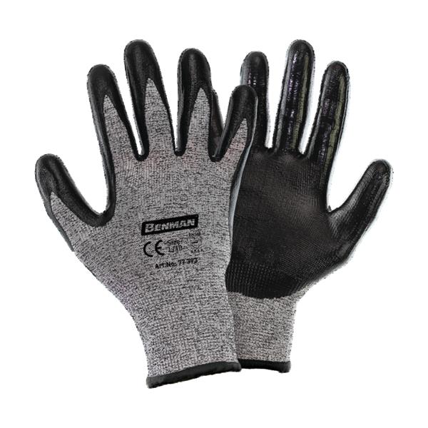 Benman 77392 Benman Cut Resistant Knitting Gloves, Black Nitrile Palm Coated, 9''/L