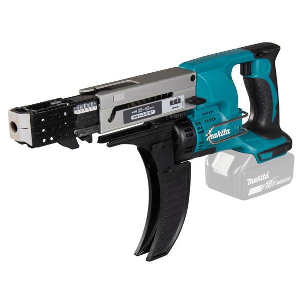 A cordless 18V LXT screwdriver for screw strips with a speed of 4 000 min-1 and a robust ALUMINIUM uto-feed system for 25 55 mm screws. A precise depth control switch and screw guide ensure accuracy and prevent slanted screw feeds. Tool only, battery and charger not included.